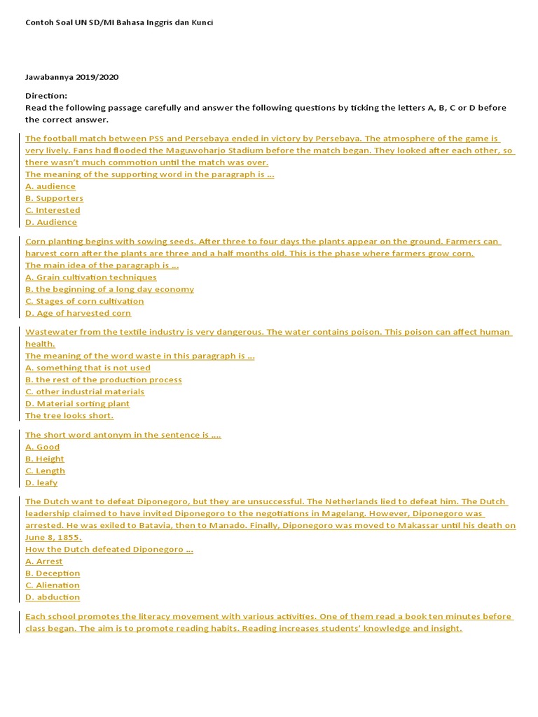 Maybe you would like to learn more about one of these? Contoh soal main idea bahasa inggris dan jawabannya. We did not find results for: Check spelling or type a new query.